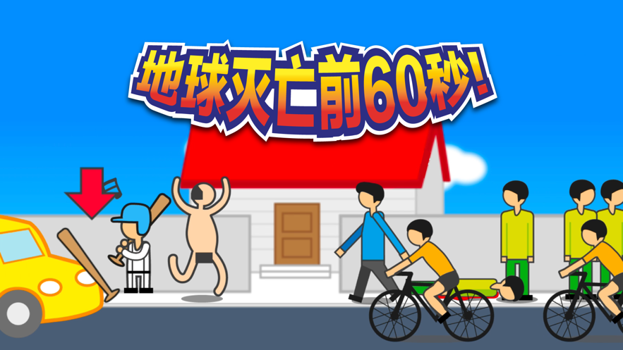 地球灭亡前60秒,是一个刺激,漫画式的动作游戏,让你亲身体会陨石撞地球前只有60秒可活的情景。你在这60秒内会做些什么?你会做些不好事情吗?你会种棵苹果树吗?
