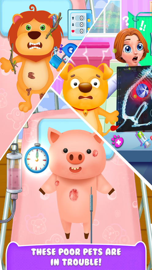 3、我们都喜欢宠物,让我们治疗动物,学习如何在这个有趣的游戏中治疗受伤的动物。