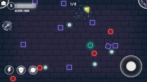1、敌人会是不同形状的图形,你将避开它们让自己时刻保持安全的境地;