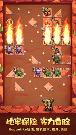 《地牢弹弹乐》游戏的画面非常的有色彩游戏的操作也是非常的简单利用弹球反弹能力更多的去对怪物进行击打同时获取道具还可以帮助你获得强力的效果加成快来试试吧。