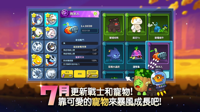 由Triple-Double运营的一款精美卡通风格的挂机放置类冒险RPG手游,玩家在这个星辰宇宙中不断的征服新的星球,手机各种强力的装备道具,同时还要不断的招募更多强力的英雄来帮助你强大自己的团队,每个英雄都有着非常强大的技能。