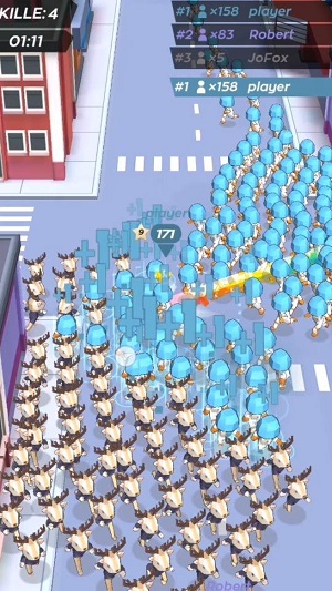 2、玩家可以通过简单的操作控制,在关卡中不断地招募你的队友小弟;