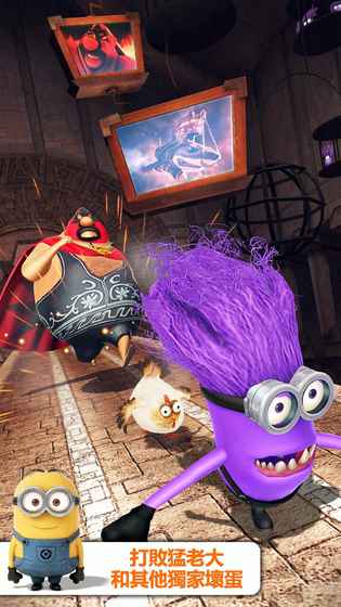 一款典型的跑酷类游戏,格鲁忠诚又呱噪的黄色小黄人已经准备好迎接最艰难的挑战啦。扮演小黄人,在搞笑的快节奏挑战中与他人竞争,打动你的老板(前任老板)——超级大反派格鲁!