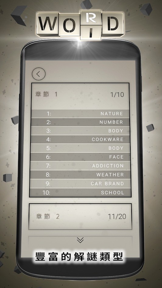 单词魔方能让玩家在玩耍中巩固学习,在学习中获得轻松和快乐,多样的游戏玩法挑战着你的单词库,你能快速的把词组都解开么?