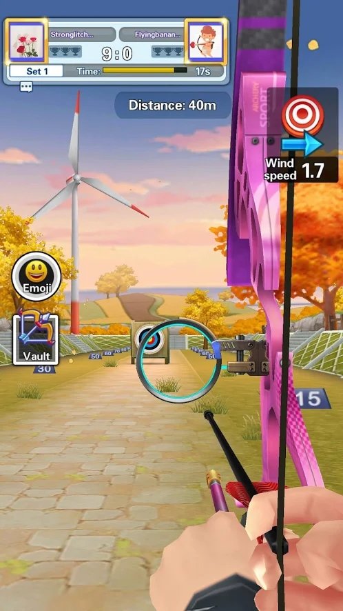 3、屏幕下方的风力也是影响射箭精准度的一个因素,玩家要考验各个方面,精准的射击敌人。