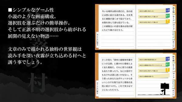 《夜雾之村特別篇》游戏中玩家将深入其中享受小说一样的文本,在这个故事中有很多结局,你的每一次选择都将影响这结局的走向。