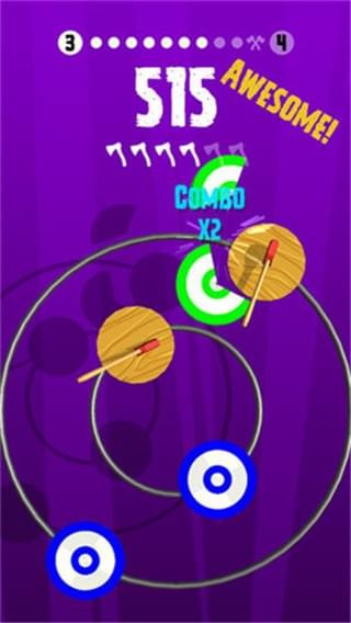 小编刚开始玩这款游戏,还以为是斧头帮类的,没想到就像是射击玩法一样,一次次的击中目标,一次次的闯关即可!