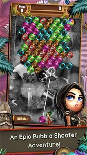 这是一款结合了屠龙拯救世界和泡泡龙玩法的游戏。在游戏里,通过射击泡泡,在关卡里清理所有同色泡泡,获得更多的分数。