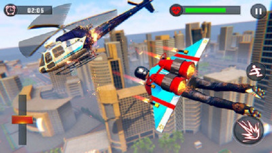 喷气背包飞行英雄这款游戏让玩家们享受到了3D的高清画面的真实感觉,飞行的特效让玩家们十分喜爱,还有射击的刺激感觉。
