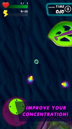 进化史莱姆是一款趣味的模拟细胞进化的休闲游戏,游戏的画面十分简单,在这个海底世界一直秉承着大鱼吃小鱼小鱼吃虾米的生存法则,必须要不断的小心吞噬比你的小的生物,躲开大型生物,这样才能一点点生存并进化下去。