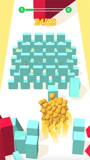 3.非常趣味欢乐的背景音乐,那些体力越大的方块撞击之后损失的人数更多,尽量避开大型障碍。