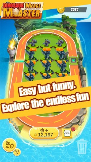 2.易于操作,只需放置相同的恐龙并合并进化,收获和赚取金币;