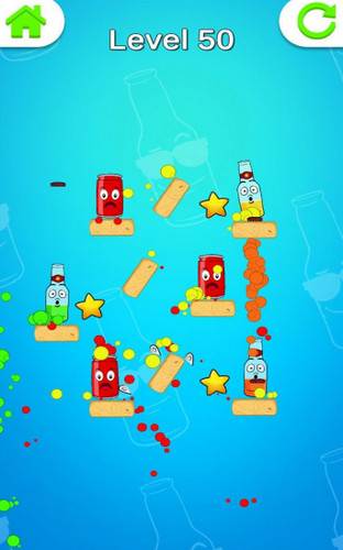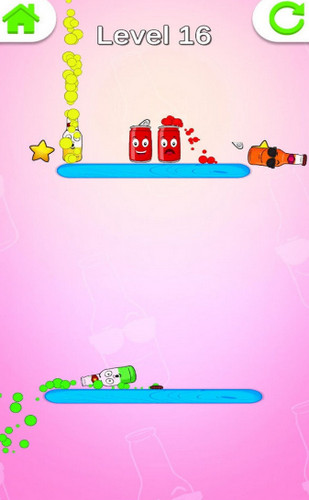 诙谐搞笑的内容风格,清晰简洁的画面,玩起来给你带来无限的乐趣快来欢乐汽水瓶尝试下,一款休闲益智类的游戏,游戏中有很多种类的瓶子如果你通过的话这些瓶子就会出现开心的笑脸,如果失败的就会有哭丧的表情,非常搞笑可爱,喜欢的朋友来下载吧!