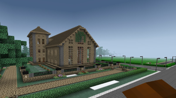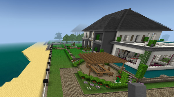 1.在天空草地上有一栋大别墅,这是您梦想中的家,虽然它是全像素样式,但也逼真的渲染;