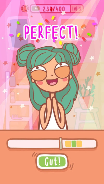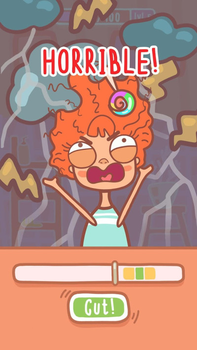 通过非常简单的操作你能不停的给不同的顾客洗头发吹头发。如果你有失误会引起顾客的不满。相对的你的店铺就有一定的损失。卡通的界面丰富的剧情。从休闲游戏来讲这个代入感还是比较的不错的!