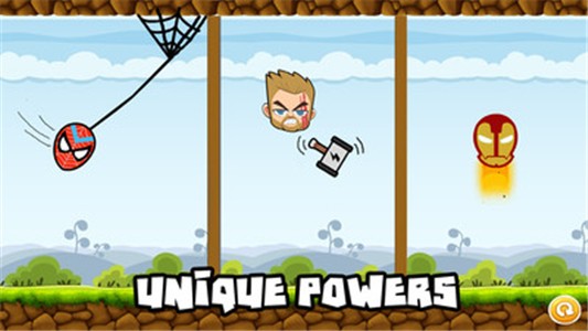 一进入游戏就能看到按照难易程度划分了许多不同的关卡,游戏操作起来和愤怒的小鸟有些类似,不过这款游戏主题是超级英雄,敌人所在的位置也是一个未知数,需要运用你智慧的头脑计算出敌人所在的位置,从而一击即中,可玩性非常高。