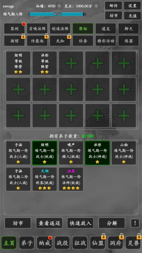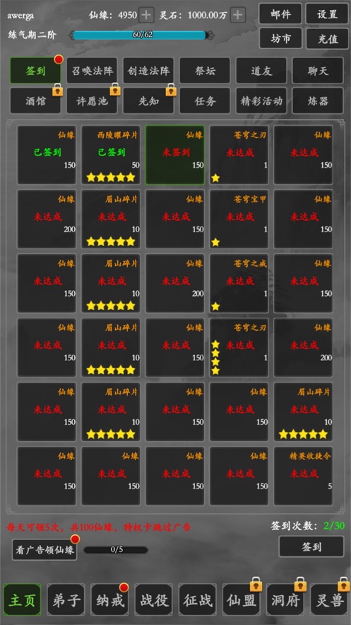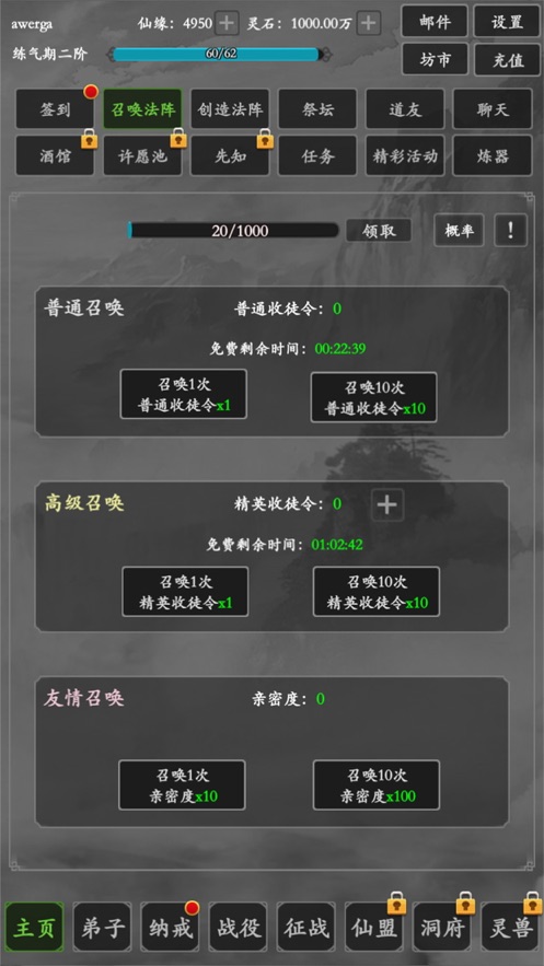 2.认真学习,新的修仙方法可以帮助您迅速招募大量的门徒;