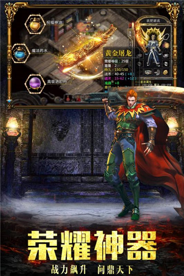 这款传奇将再现激烈的沙场,惊险刺激的战斗和真人竞技模式,你必须不断的强大自身的实力,野外刷副本可以为你掉落顶级神装,供你在PK的战场上以一敌百,更有强大的公会等你来参加,与伙伴们一起战斗,体验全新的传奇乐趣。