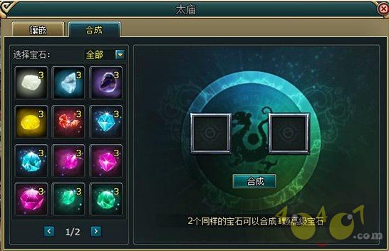 在9377《诸子百家》太庙建筑里,可以指派太常进行镶嵌宝石、合成宝石。镶嵌可以为装备镶嵌宝石,并额外附加上宝石的属性。合成宝石可以将小宝石两两合成为高级的大宝石。