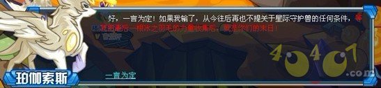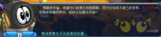 它真正拥有的其实是金、蓝、紫、红分别代表拥有了光、水、超能已经战斗的能量,四个系的能量果然是厉害哦。 ![]() 珀伽索斯出现了,珀伽索斯的怨恨还是那么的深。 ![]() 播放一段动画。 ![]() 珀伽索斯承诺只要自己输啦,以后就不再提关于星际守护兽的事情了。 最后他还说只要他收集到了最后一根冰之羽毛的话,那我们就完蛋啦。 ![]() 冰之羽毛一定和冰系精灵有关。 ![]() 任务完成。 获得奖励:1、8000点积累经验。 ![]() 2、获得5个D级技能石。 ![]() 3、一个白色羽毛。 ![]() |