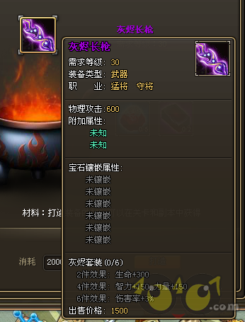 30级,96PK《龙将》中玩家最初的一套紫色套装“灰烬”,就是在这个级别开始装备的。当然这不是游戏里最先出现套装,之前的蓝色“霸玉”套作为大众装备就没什么好回忆的了!说到“灰烬”套,大家就不得不提30级副本了,作为打造紫色装备的材料出产地,估计里面的BOSS会恨死玩家的,50级之前大家每天上线的第一件事情估计就是揉虐他们了!