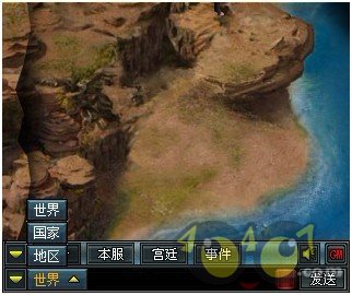 跨越千年聊天系统的切换功能包括:世界、国家、地区、综合、本服、宫廷、事件。