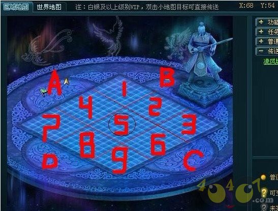 这个时候推荐队伍移动到棋盘外面ACD的位置(B点会出去)----个人推荐D位置.一个人引怪,把7 8 9 点刷新的怪杀死就可以了.然后BOSS会在5号点刷新.过去把他引诱过来合理的站位后,很轻松的就消灭掉第一个BOSS