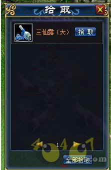 点击拾取可以拾取选中物品,点击全部拾取可以拾取全部物品。使用快捷键 ‘空格键”快速拾取。