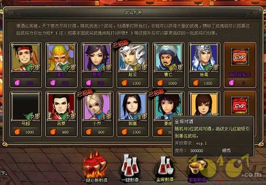 再来说说招募武将。随着主将等级提升,玩家可以招募的武将越来越多,那些高级的将领各项属性都更为优秀,换将是每个玩家都必然会做的选择。不过,为了省钱,武将还是不要随意更换哦!玩家应该根据自己需要,配置合理阵型,提前想好武将目标。否则耗费大量银币划拳换来的武将,还要耗费大量武魂换经验卡升级,最后得到的却是不理想的武将,这样不仅浪费了银钱,还浪费了时间与精力。