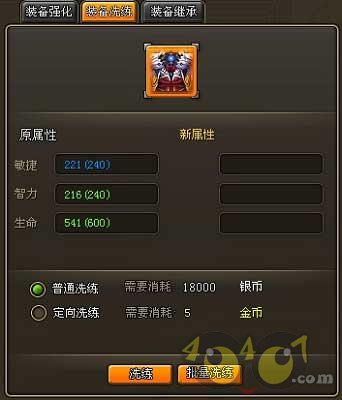 最后一个需要大量花费银币的地方要数装备洗练,因为装备属性更换或者提高,只有通过洗练才能达到,而洗练是需要银子的,尤其装备等级越高,需要的银子就越多。一般情况下建议大家不要多次洗练,因为装备是经常更换的,而装备继承无法继承洗练的属性。所以,玩家应该等闯关遇到洗练任务时再洗练,那样既可以洗练装备,又可以完成任务得到奖励!洗练关键时刻可以选用定向洗练,得到最高、最好的属性!