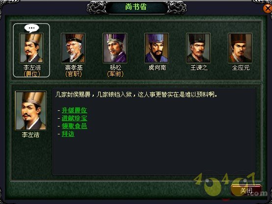 尚书省:实现拜访,进贡珠宝,升级爵位,升级官职,升级军衔,领取食邑,领取俸禄,领取士兵等功能的场所