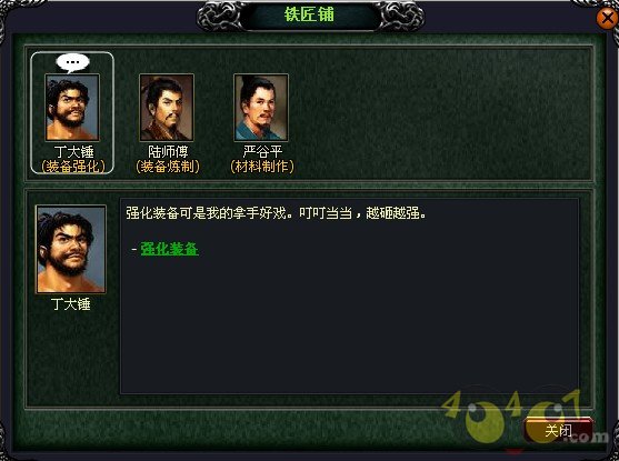 铁匠铺:强化装备,炼制装备,装备分解,合成材料,兑换材料的场所。