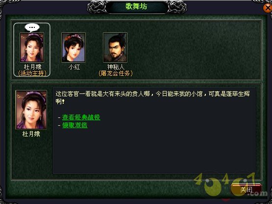 歌舞坊:查看经典战役、特殊活动排行、领取双倍、屠龙会任务的场所