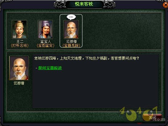悦来客栈:实现打探名将,查看英雄谱,鉴定藏宝图,探问宝器踪迹的场所