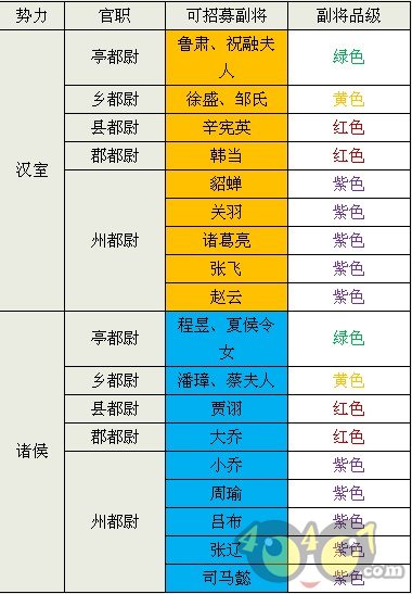 l 汉室、诸侯各自拥有不同副将,供各位英雄招募。