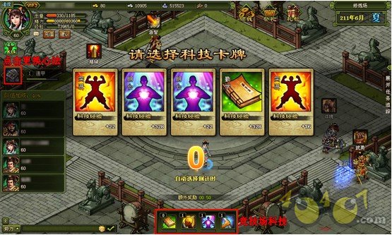 l 在修炼场中每过一段时间会出现科技卡牌,选择突进会增加当前修炼心法的经验值,选择其他卡牌会增加相应修炼场科技经验。