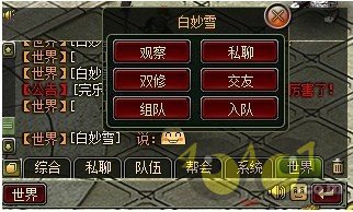 在世界频道上看到有玩家在说话,点击“人名”弹出对话框,点击“交友”按钮,即可添加好友。