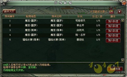 江湖情缘副本系统又叫“历练密境”,玩家20级即可参加,