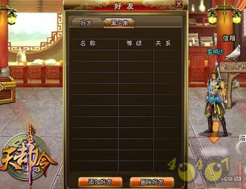 俗话说,一个木头三个桩,一个好汉三个帮。再厉害的高手也有需要朋友帮忙的时候。在《天劫令》的世界里,广结天下英雄,一同锄强扶弱,伸张正义是必不可少的事情。现在,就让我们一起看看天劫令的好友系统吧。