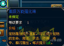 高级万能强化珠,单次升星效果是普通万强强化珠的3倍,高级神圣宝珠也是普通神圣宝珠的3倍效果。