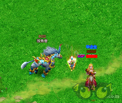 在驯服两波宠物后,BOSS就会出现,BOSS可是蓝色品质哦,驯服BOSS后,也有一定机率掉落相同的独角兽宠物蛋。