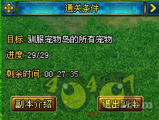 进入宠物岛后,会有30分钟的闯关时限,一共29个宠物需要驯服,驯服所有宠物后,则完成副本,方可以退出。