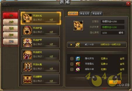 还有就是出来强化装备这个图标的时候,你必须一直保证你强化不间断。下面说说前期先强化哪些装备,主将:武器靴子,前军:要带头盔衣服披风,中军:武器靴子要带,后军:武器靴子。保证优先强化保证在第一天过普通30FB便无问题。前期武将大家可以先用2个绿将,留这银币换紫魂等50级的时候在招紫将。