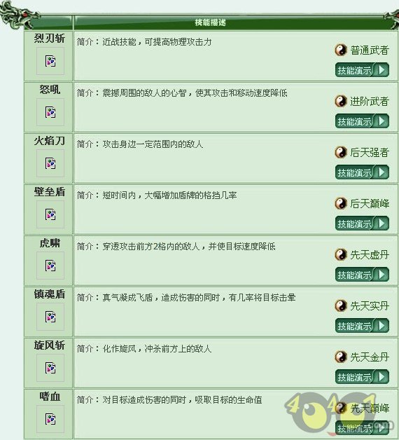 技能偏重外力攻击,攻击速度偏慢,防御力低,但具有最高的单次攻击伤害,每一击都会使敌人遭受致命的伤害。