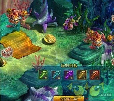 “春分登天,秋分潜渊,呼风唤雨,无所不能。”龙,藉由天生的神通,自古以来便受到天地万物的膜拜。龙宫中收集的宝物也不在少数,玩家按照“钱如命”的指点摸进龙宫之后,就会发第一笔财:满地的宝箱。但也别太兴奋,这只是小财。打开箱子,会随机的蹦出来龙宫的守卫。打到守卫后还会得到钥匙,其实,说“抢”也可以啦。。。