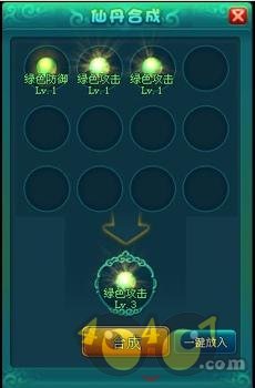 《七十二变》中的仙丹可以通过与其他成色较差、等级较低的仙丹合成进而获得成长。在“仙丹合成”面板中,玩家可以在“目标仙丹”处放入希望升级的仙丹,在上面的槽位中依次放入作为原料的仙丹,点击“合成”按钮,就可以将原料仙丹中的经验转移到目标仙丹中,助其提升等级了。不过,成色较差的仙丹是无法通过升级变成成色较好的仙丹的,例如蓝色仙丹无论如何都不能通过升级变成紫色仙丹的。所以,想要炼出极品仙丹,先跟炼丹师搞好关系吧!