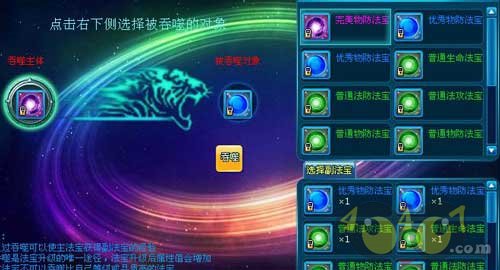 法宝品质有:坏宝、普通、优秀、完美,其中:最好的最有用的当属完美的法宝,所以在选择法宝时如果拥有多件同种类型法宝,只选择完美的法宝;优秀的法宝只是个过渡;普通的法宝只能当做被吞噬的对象;坏宝不能被吞噬一键卖出。