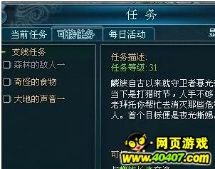 到了6级以后以后不同玩家可以选择不同道路到达10级。一个就是挂机刷怪和主线,另外就是支线任务,在你的任务面板你么会出现附图: