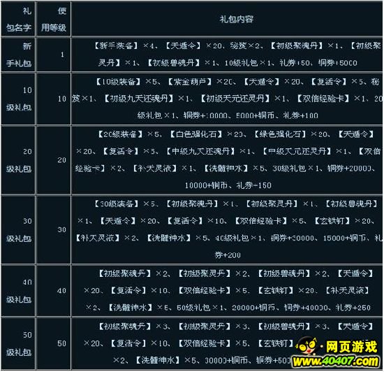这个是官方的说明,我统计最有用的数据就是礼卷到50级的时候你将会获得100+50+100+150+200+250+300=1150礼卷看起来很多,其实你不够用的,希望大家节省点用。