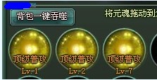 例如橙色(顶级)的普攻元魂,也分10个等级的,上图中从左到右等级递增,等级越高,佩戴之后给人物加成的属性越好,一共有10个等级,图中只列出3种作为示例。